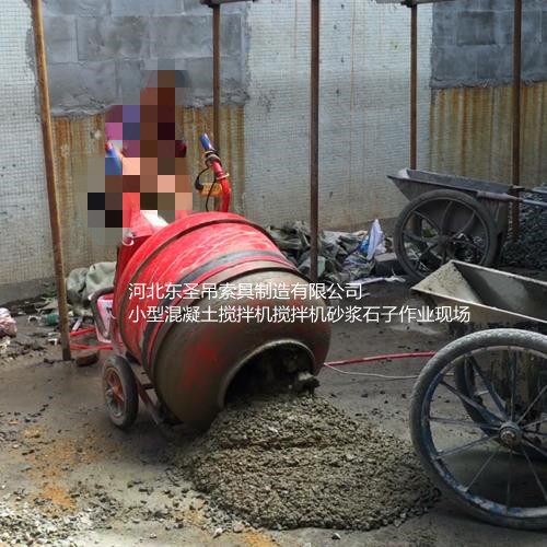 小型攪拌機(jī)廠家河北東圣吊索具制造有限公司某客戶在砌筑家庭圍墻時(shí)需要進(jìn)行墻頂抹面,因此需要使用小型攪拌機(jī)在施工現(xiàn)場(chǎng)預(yù)拌和抹面用混凝土建筑材料。